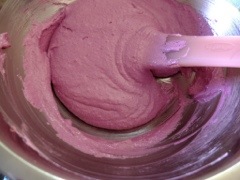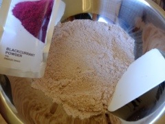 I substituted 6 g of icing sugar with 6g of freeze dried Blackcurrant powder and did something I haven’t done before – instead of sifting, I blitzed the almond, macadamia meal, icing sugar and Blackcurrant powder until it is a fine powder.