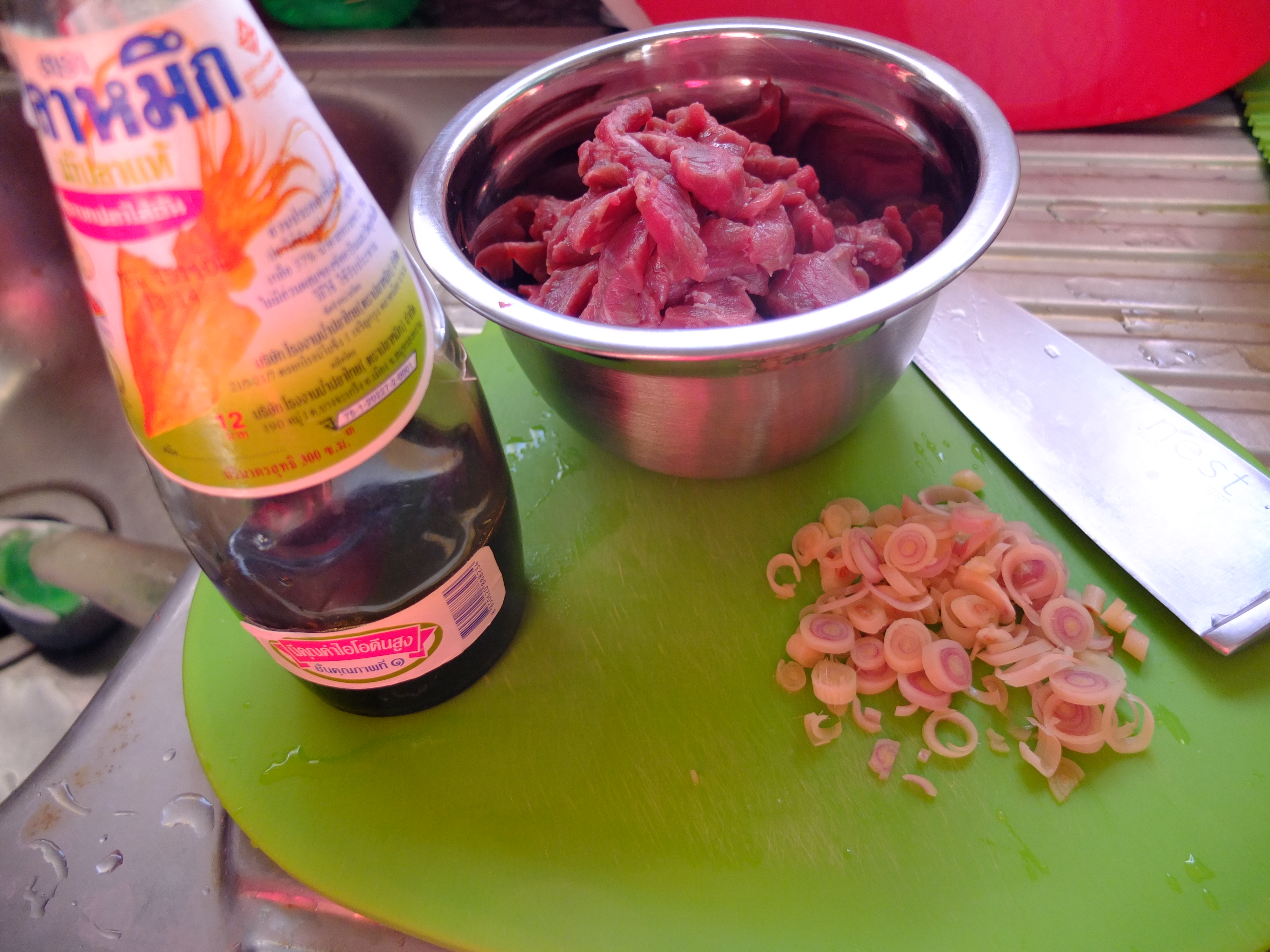 Marinate the beef with the lemon grass, fish sauce and corn flour for 30 minutes.